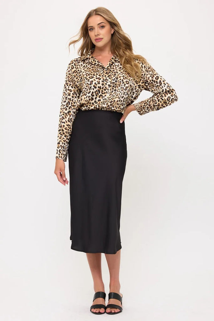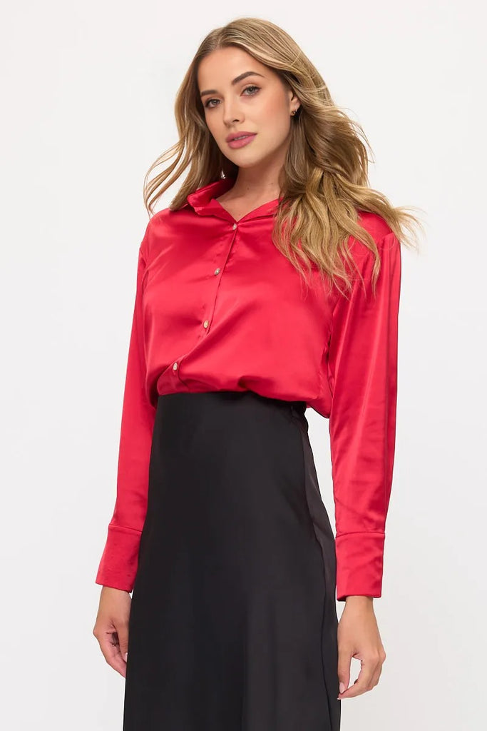 Long Sleeve Classic Satin Button-Up Blouse
